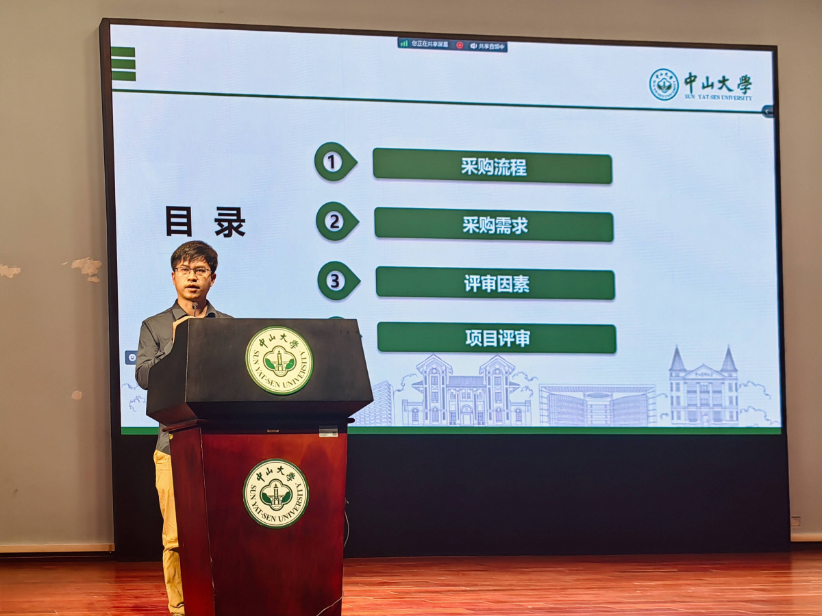 招标中心郑友旭主管以“学习统一采购常见问题案例解析”为题,从采购流程、采购需求参数设置、评审因素设置、参与项目评审等四个方面,以案例为主线剖析了采购活动中常见问题和政策法规的常见禁止项,并给出合理化解决方案。培训结束后,郑友旭主管还与参加培训学习的老师进行了互动交流答疑,对大家日常采购中的疑点、难点进行了解答。