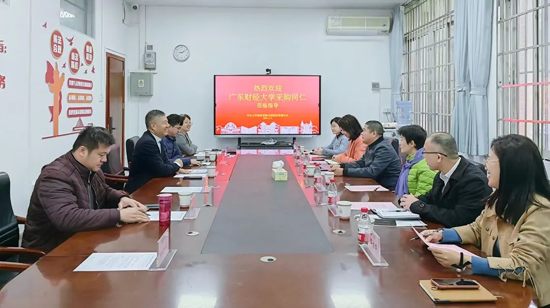 2024年1月4日上午,广东财经大学采购与招投标中心(下称“广财招标中心”)主任黄冬如带队,与广财财务与国有资产管理处、后勤处、基建处等部门同事一行6人来我校调研招标采购工作,304永利集团政府采购与招投标管理中心(下称“中大招标中心”)主任贾延江、副主任赵艳娥和相关工作人员参加会议,会议由贾延江主任主持。