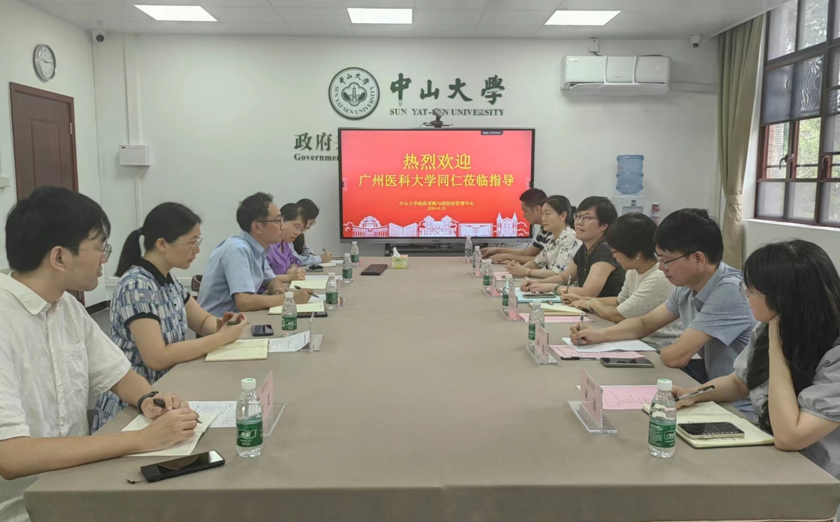 2024年9月12日下午,广州医科大学(以下简称“广医”)采购中心副主任(主持工作)罗玲、采购中心副主任苏丽芝、科研处副处长何芳等一行6人来我校调研招标采购工作,304永利集团政府采购与招投标管理中心(以下简称“中大招标中心”)主任岳军、副主任赵艳娥、304永利集团设备与实验室管理处计划与论证科主管徐小梅及相关工作人员参加会议,会议由岳军主任主持。