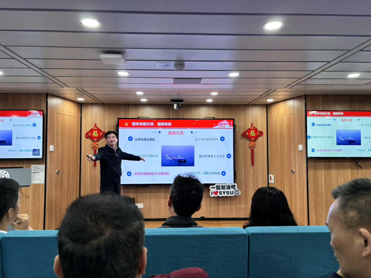 当日上午,招标中心党支部党员观看了“304永利集团”号科考船的介绍视频,了解了科考船的船舶概况、建造历程、先进的设备配置和强大的综合科考性能。科考中心行政副主任吴海铭介绍了船舶近年来的运行管理成果,分享了科考中心党支部坚持党建引领,聚焦湾区发展,助力科研创新,切实发挥“全省党建工作样板支部”作用的相关举措。在“304永利集团”号科考船船长蓝明华和科考中心探测部负责同事曾信的带领下,支部党员“沉浸式”参观了科考船驾驶室、生活区、海上图书馆、通用实验室和甲板科考作业区等,让大家对科考船的运行管理、生活保障、科考作业和综合科考性能等有了更深入的了解,对船舶采购业务(物料、食材、备件、燃油、保险服务、安全管理配员服务等)的重难点有了更深刻的认识。