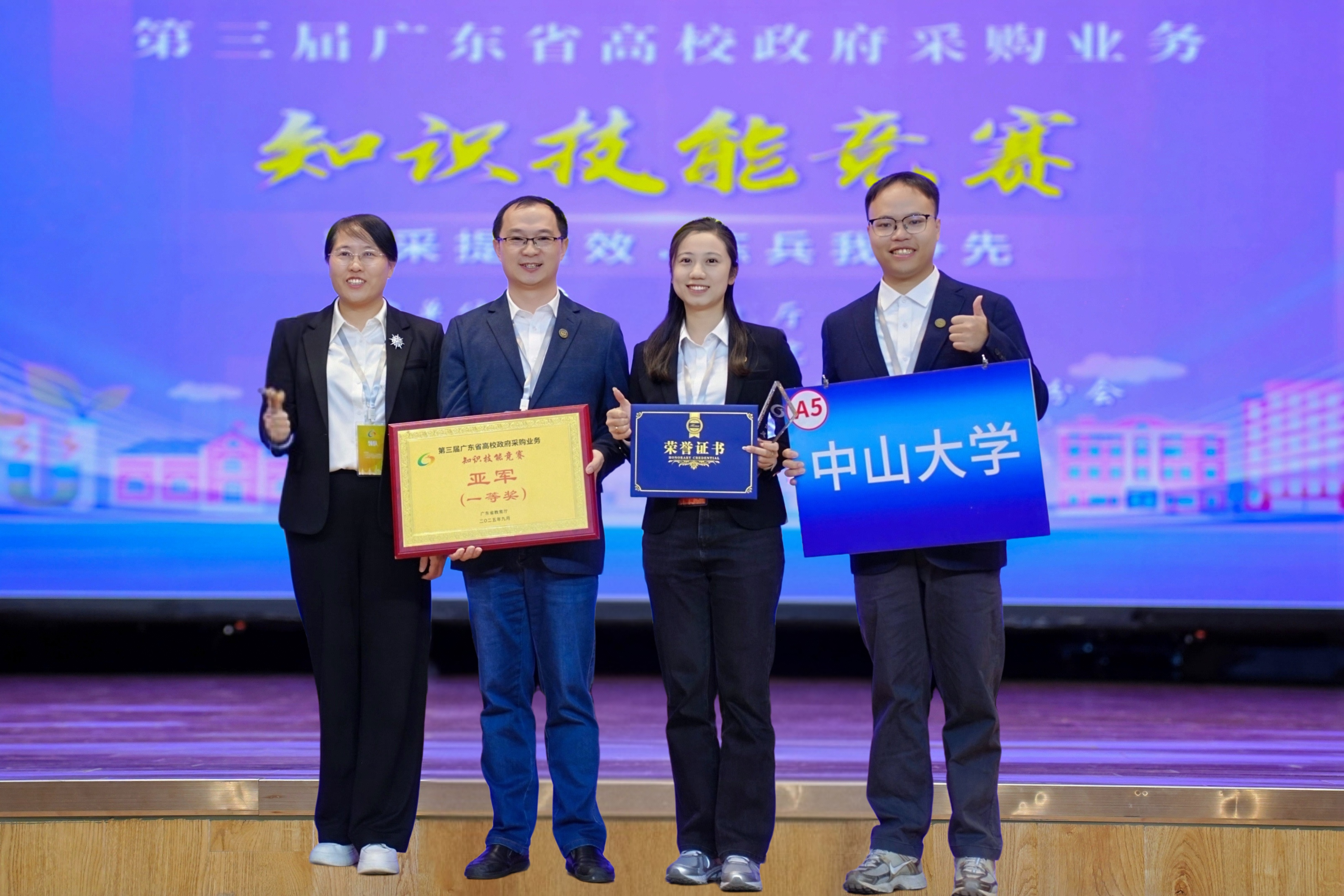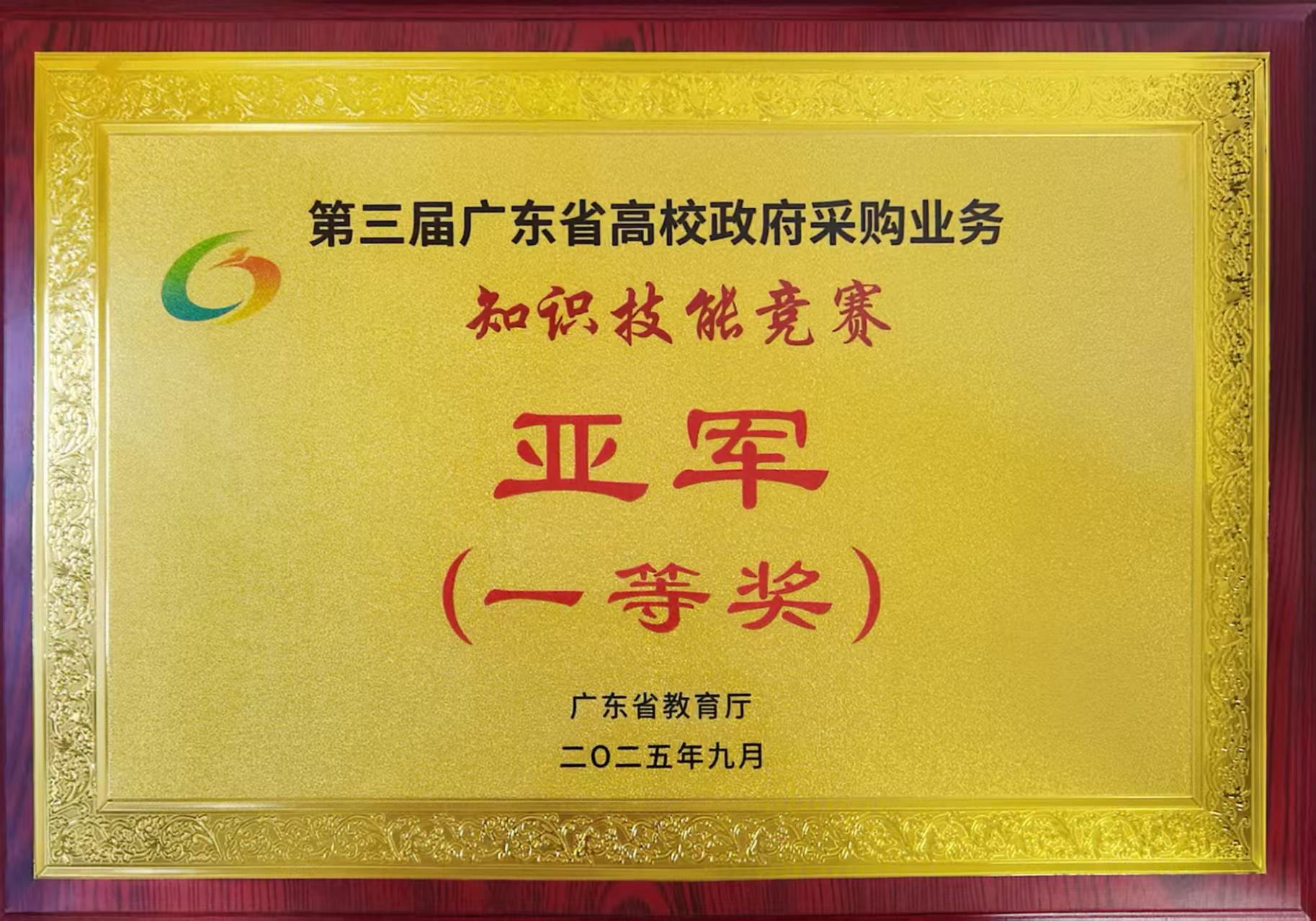 2025年11月20日,由广东省教育厅主办的第三届广东省高校政府采购业务知识技能竞赛决赛在珠海科技学院举办,我校政府采购与招投标管理中心派出以赵艳娥副主任为领队,罗向欣、刘惠艳和黎恒见老师为队员的队伍参加了比赛并荣获亚军,本单位刘惠艳老师荣获“最佳风采奖”“线上最佳选手奖”。