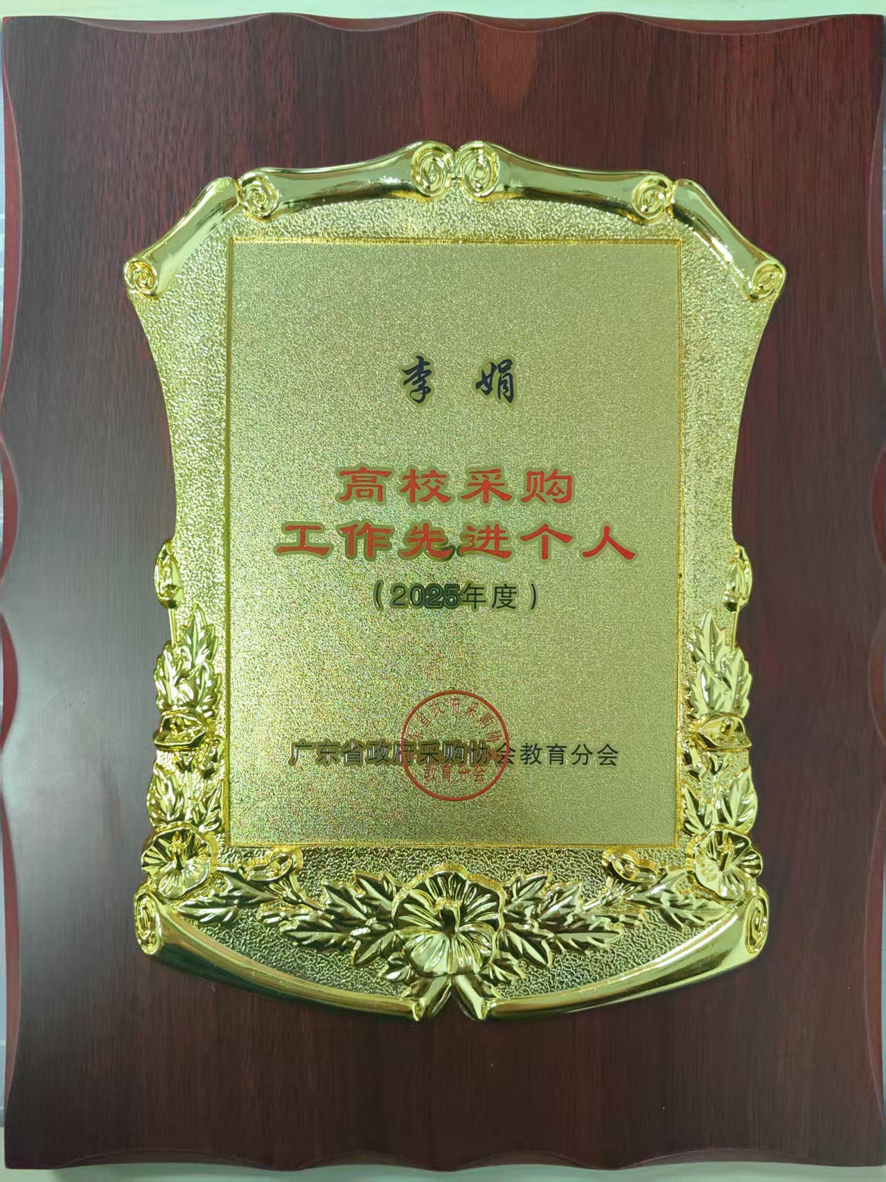 同期,我校参加了广东省教育厅举办的2025年广东省教育部门政府采购工作业务培训,参加了广东省政府采购协会教育分会年会,本单位李娟老师荣获广东省政府采购协会教育分会颁发的2025年度“高校采购工作先进个人”。